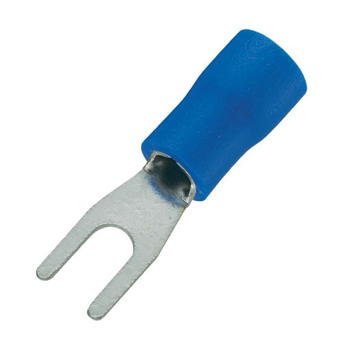 Предназначен для создания качественного подключения электрооборудования, которое при необходимости возможно разъединять без полного откручивания крепежного соединения, всего лишь ослабив винтовую фиксацию. Такая клемма используется для оконцовывания многожильных медных проводов при монтаже мобильных электрических контактных соединений на подвижном составе (автомобиле-, вагоно-, самолето- и судостроении) или в других местах, где важна надежность соединения (к примеру, телефонное или климатическое оборудование). Изолированный вилочный наконечник состоит из двух компонентов: металлического коннектора (вилка) и защитного изолятора, закрывающего место обжима. Металлический коннектор изготовлен из латуни, с поверхностным электролитических лужением (возможно использование в условиях повышенной влажности), а изолятор клеммы из поливинилхлорида (ПВХ), который надежно защищает место обжима кабеля.