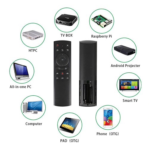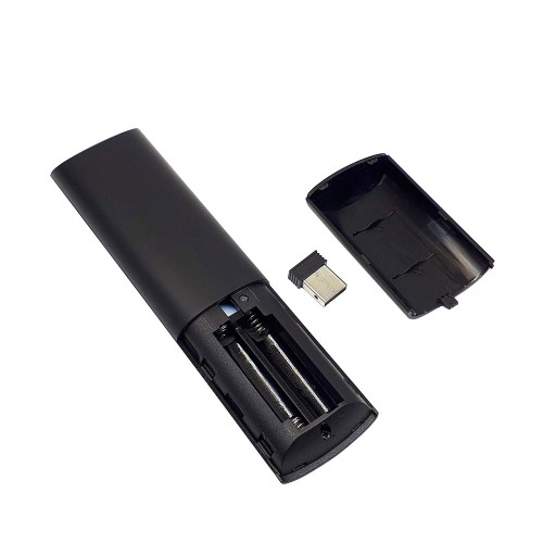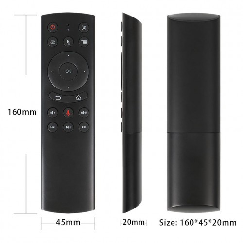 Предназначен для управления с помощью жестов руки в воздухе. Поддерживает управление с помощью голосовых команд, голосового поиска и управление через Google Assistant. При необходимости режим мышки можно отключить кнопкой на пульте и пользоваться как обычным пультом.