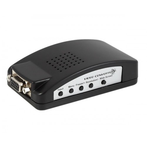 Это устройство способно конвертировать видеосигнал высокой четкости в композитный видеосигнал, а также для подключения устройств с разёмами S-video (4 PIN) и VGA (c поддержкой 4:3, 16:9). Видеоконвертер не требует для своей работоспособности никакого дополнительного программного обеспечения и работает сразу после подключения. Конвертёр используются для подключения видеокамер, регистраторов, плееров, ресиверов, игровых приставок, компьютеров и ноутбуков к мониторам, телевизорам или другим устройствам поддерживающих разъёмы VGA, RCA и S-VHS.